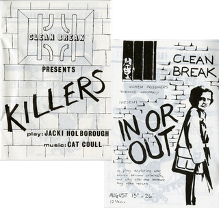 They returned to Edinburgh Fringe in 1980 with another double bill – Killers by Jacki Holborough, a monologue from the perspective of a female prisoner in Durham H-Wing, with songs by Cat Coull; and In or Out by Jenny Hicks and Eva Mottley, staging the relationship between a prison officer and a prisoner on the eve of her release from HMP Holloway.
